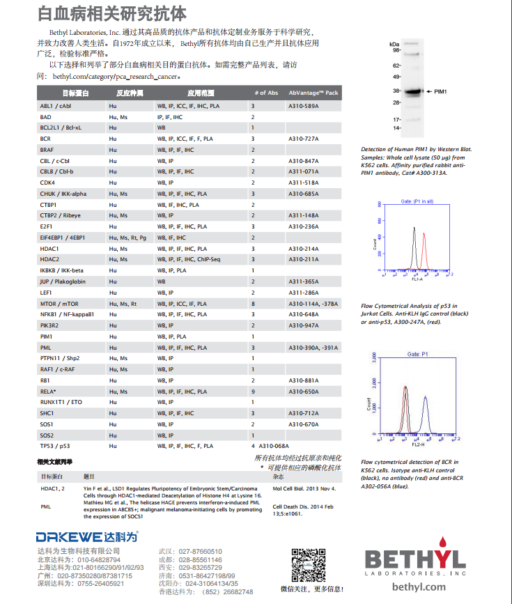 【重磅】Bethyl Laboratories擁有超過(guò)135個(gè)抗體可用于白血病的研究