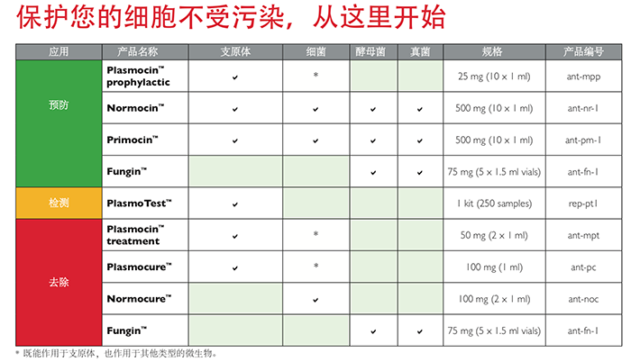 InvivoGen提供多種高效抗污染試劑,幫助您預(yù)防、去除和檢測微生物污染。