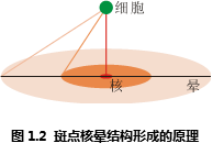 ELISPOT板膜,就會被板膜上的包被抗體捕獲。在所有從細(xì)胞到斑膜的路徑中,有條路徑短,這就是位于細(xì)胞正下方到板膜的垂直距離。路徑越短,擴(kuò)散中耗散損失就越少,到達(dá)該點(diǎn)的細(xì)胞因子就越多,將來顯色的時候顏色就越深。以垂直距離點(diǎn)為圓心,向外畫一系列的同心圓,同心圓的直徑越大,細(xì)胞因子擴(kuò)散的距離就越長,耗散越多,到達(dá)的細(xì)胞因子就越少,顏色就越淺。當(dāng)超過一定距離之后,擴(kuò)散到達(dá)的細(xì)胞因子就減少到背景水平了,這就是斑點(diǎn)的邊界。