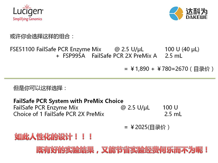 提供人性化的定制組合:一旦確定了最佳的PreMix,既可以單獨(dú)購買PCR 2X PreMix和PCR Enzyme Mix ,也可以選擇購買含有以上兩種成分的套裝。