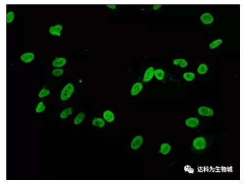圖3. 使用1:34 稀釋的Histone H3.1K4me2單克隆抗體(貨號:A68400)對HeLa細胞進行免疫熒光染色(IF)。